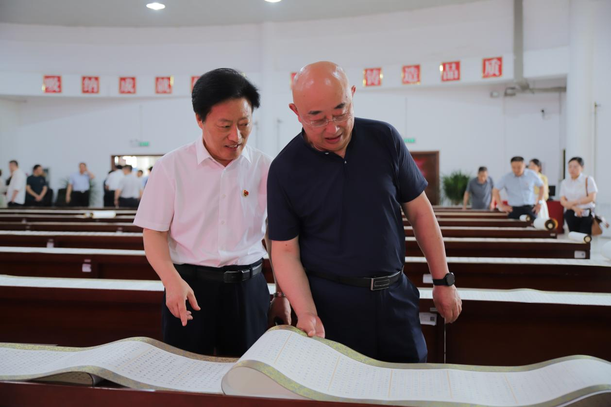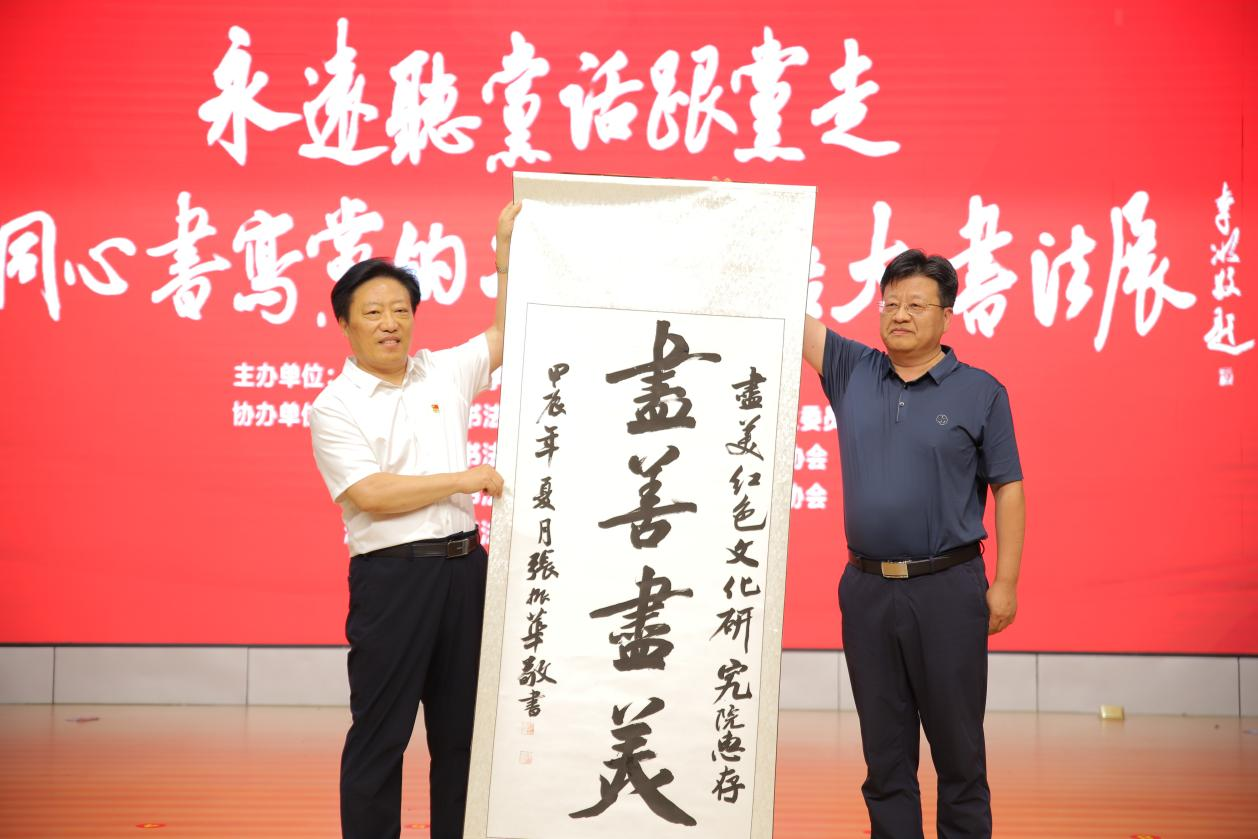 随后与会领导和嘉宾现场观摩了书法展,参观了尽美红色文化研究院,并举行了座谈会,就如何进一步传承红色基因、弘扬尽美精神进行了深入交流和探讨。
