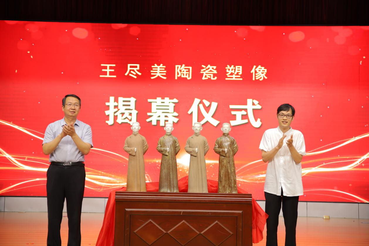 葛国文书记与工艺美术家马池彬共同为王尽美陶瓷塑像揭幕,以此表达对革命先辈的深切缅怀和崇高敬意。