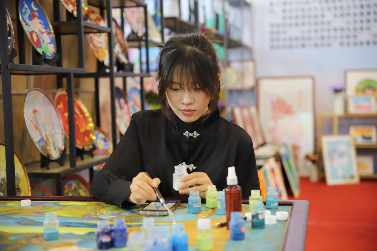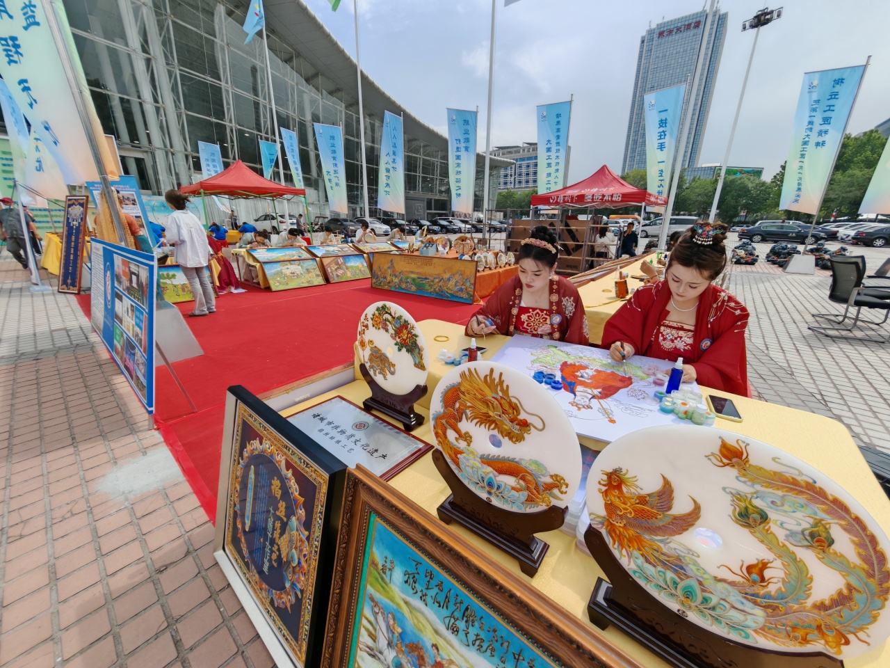我校职业教育活动周系列展示活动,基于学校办学成果,重点展示了学生在专业技术技能、非遗技艺传承、传统文化学习等方面的成果。参展的项目包括掐丝珐琅、剪纸等作品,通过现场展示和抖音直播等多种形式,立体化地向参会嘉宾和社会大众展示了师生的技术技艺和创新能力。