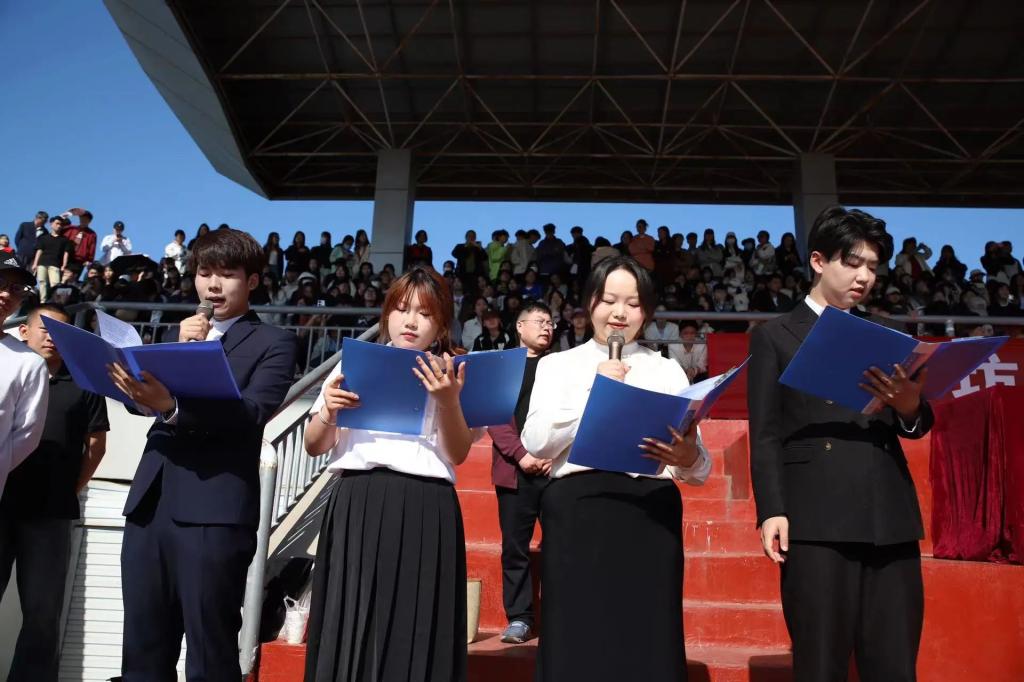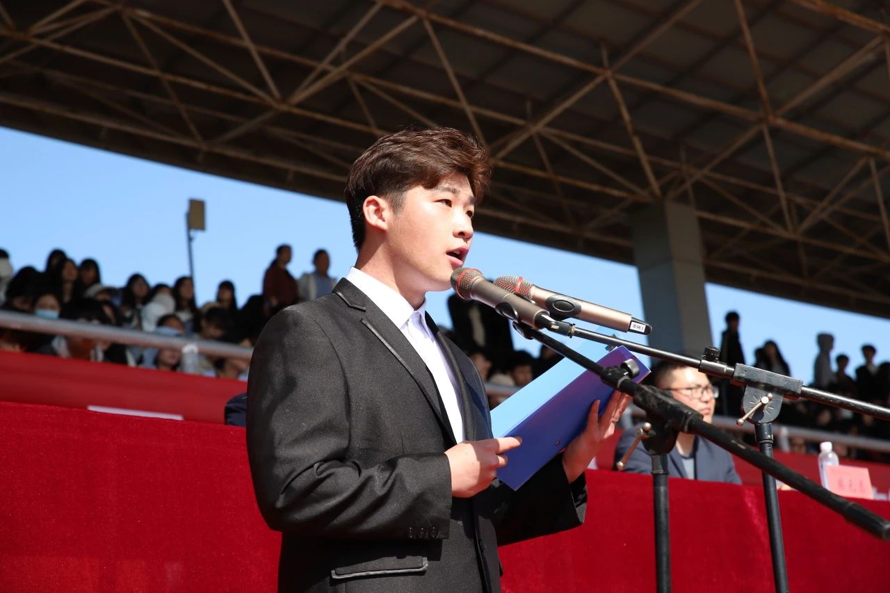 裁判员代表王绪义老师和运动员代表吴汉同学分别进行了宣誓和发言,表达了对体育精神的尊重和对比赛的期待。