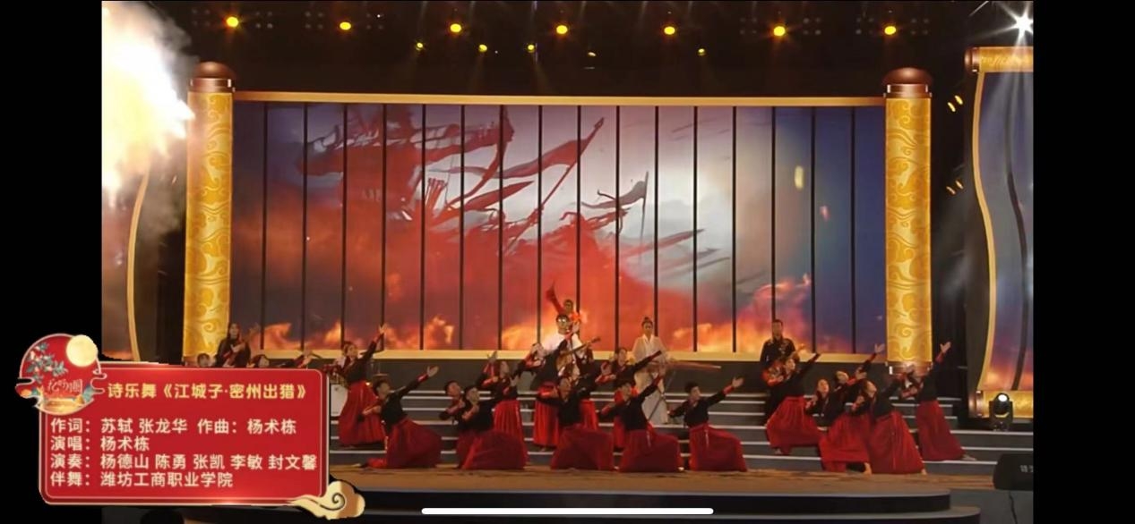 9月25日至27日,第十三届(诸城)东坡文化节在潍坊诸城市举办。9月26日晚会现场,我院参演了《知密州》《望江南·超然台作》《江城子·密州出猎》等具有浓厚东坡文化色彩的精彩节目,演出获得领导观众们一致好评。
