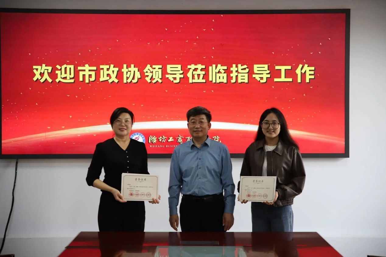 座谈会上市政协党组成员管常青对我校师生的专业水平和奉献精神给予充分的肯定,同时也对我校给予本次晚会的大力支持表达感谢,会议现场市政协党组成员管常青为我校两名指导教师颁发奖状并为我校赠送书法作品。