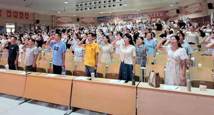 新教师岗前培训开班典礼上,市教科院相关负责同志带领新入职教师进行了入职宣誓。“我志愿成为一名人民教师,忠诚党的教育事业,贯彻党的教育方针,遵守教育法律法规,履行立德树人职责,做到有理想信念、有道德情操、有扎实学识、有仁爱之心。为党育人,为国育才,为中华民族伟大复兴,奉献全部智慧和力量!”广大新入职教师整齐肃立,右手举拳,誓言铿锵,眼中饱含自信,胸中初心如炬。