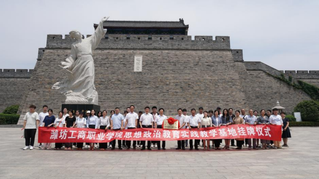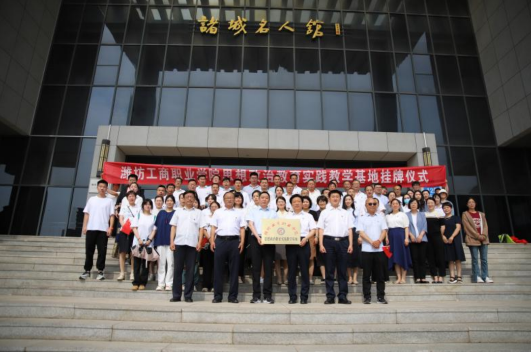 6月16日上午,潍坊工商职业学院校长张绍秋,执行校长、常务副书记郑志松,学校副校长、潍坊市经济学校校长唐德良等学校领导一行,先后前往诸城市博物馆名人馆、刘家庄抗战事迹陈列馆及诸城市超然台参观学习并进行思想政治教育实践教学基地揭牌仪式。全体党支部书记,马克思主义学院全体思政课教师以及部分党员和学生代表参加仪式。