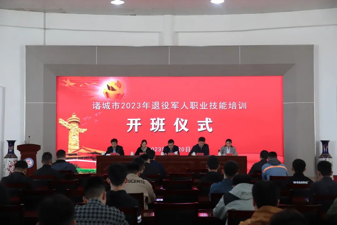 为加强诸城市退役士兵职业教育和技能培训,提高退役士兵就业创业能力,4月20日,诸城市2023年退役士兵职业技能培训开班仪式在潍坊工商职业学院举行。诸城市退役军人事务局党组成员、副局长孟宪文,潍坊工商职业学院党委常务副书记、执行校长郑志松出席仪式并讲话。诸城市退役军人事务局党组成员、退役军人服务中心主任于玲,市退役军人服务中心副主任隋泽青,乡村振兴学院全体培训教师及退役士兵参训学员参加了本次仪式。