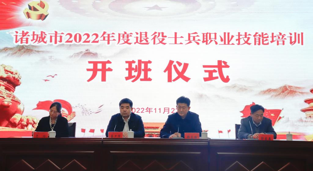 为加强退役士兵职业教育和技能培训,提高退役士兵就业创业能力,11月22日,诸城市2022年退役士兵职业技能培训开班仪式在我校隆重举行。诸城市退役军人事务局党组书记、局长姜夕军,我校执行校长、党委副书记郑志松郑志松出席仪式并发表了重要讲话。诸城市退役军人事务局相关领导、我校乡村振兴学院负责人、部分培训教师与会。全体参训学员线上参加了本次开班仪式。