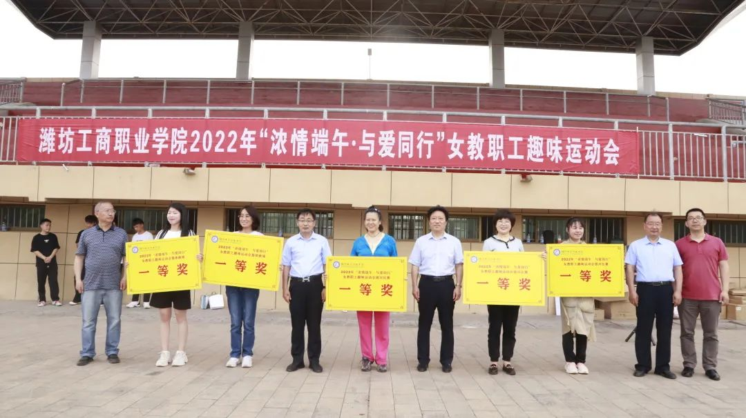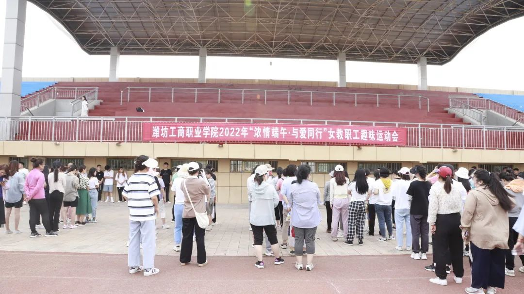 为加强校园文化建设,增强凝聚力和向心力,丰富女教职工生活,倡导健康生活理念,促进我校教育事业的和谐发展,6月2日下午,潍坊工商职业学院2022年“浓情端午·与爱同行”女教职工趣味运动会在学校大操场成功举办。此次活动设置六个趣味竞赛项目,近百名女教职员工参与。