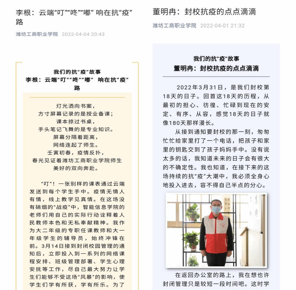 ——这一月,师生、同事变战友。不管是校内驻守者还是校外守望者,全体师生员工同仇敌忾、休戚与共、互帮互助、共抗疫情,成为一个战壕的战友。