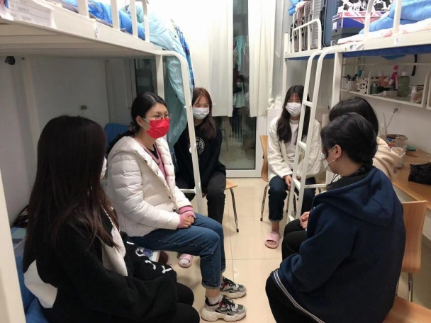 学院领导团结一心、齐心协力,每天召开辅导员例会,深入学生宿舍,开展疫情知识宣讲、安全隐患排查和思想状况调研等工作,全方位掌握校园封闭管理期间学生的心理变化,生活状况和存在困难,切实为学生办一些好事、实事,将学校对学生的关心关爱传达到位,将疫情防控各项措施落实到位,将学生生命安全和身心健康保障到位,牢筑疫情防控屏障,密织校园安全防护网。