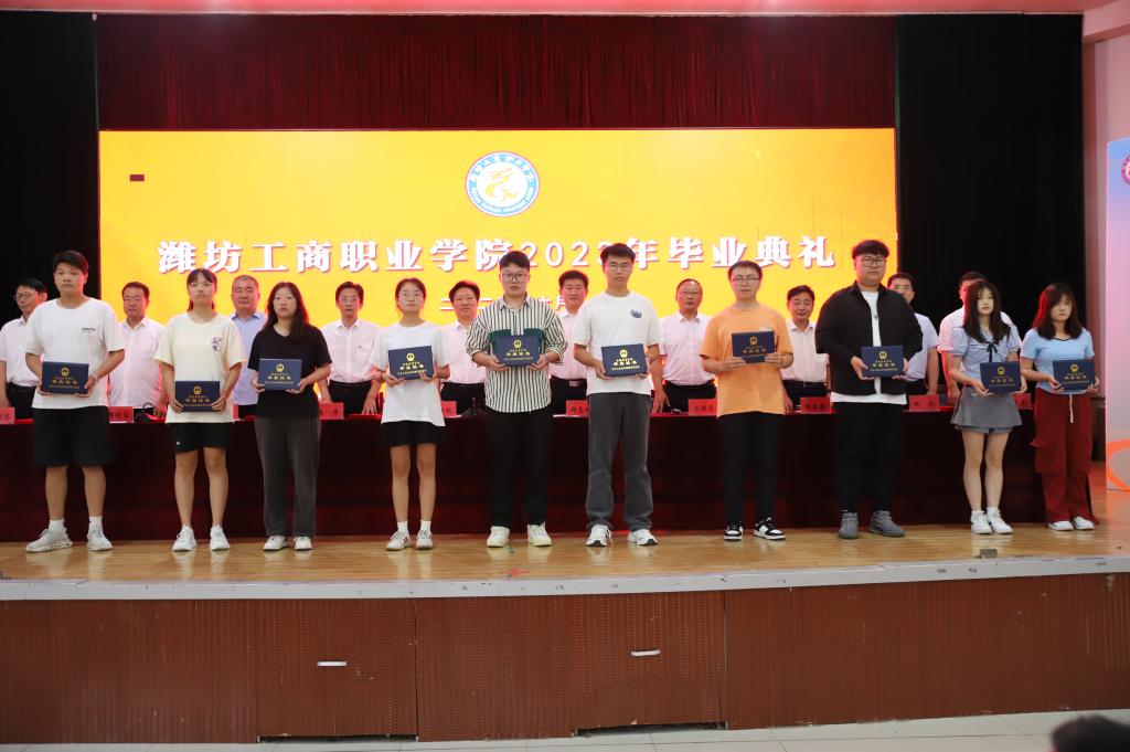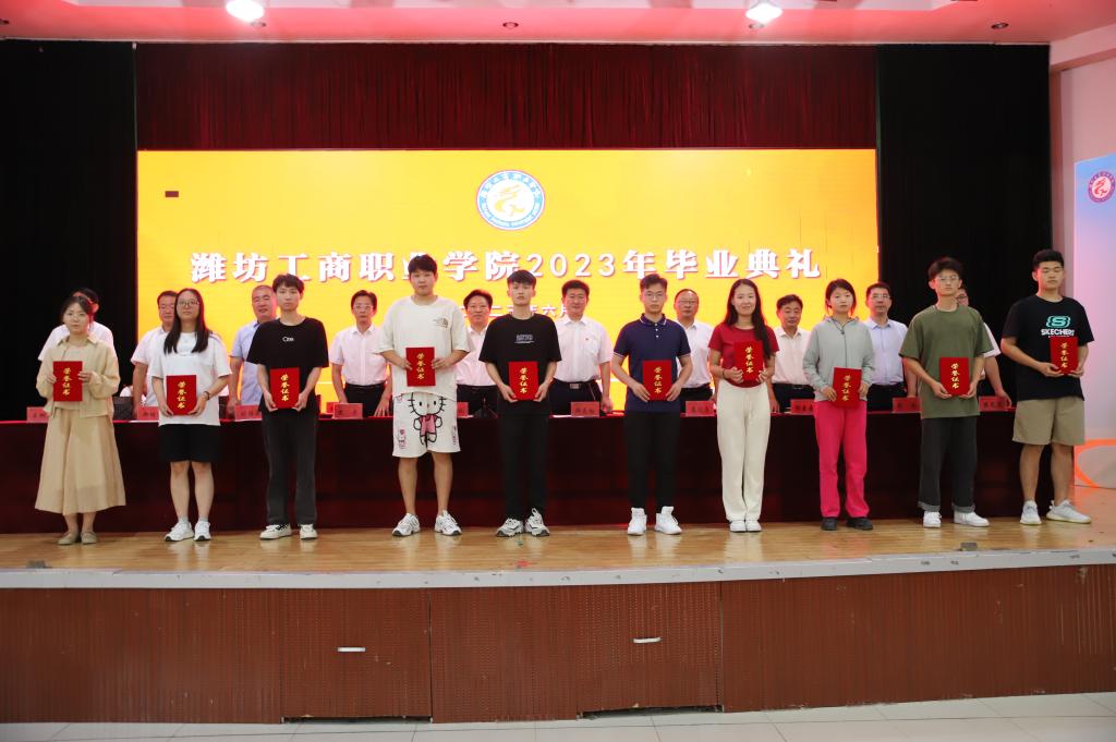 校长张绍秋发表致辞。他满怀深情地说,三年前,你们满怀着憧憬和理想来到了潍坊工商职业学院,在这里印记了你们奋发好学、苦练技能的身影,洒下了你们顽强拼搏的汗水,留下了你们惬意轻盈的步履,这个校园的一草一木、一楼一宇都记录下你们拔节孕穗、破茧成蝶的成长过程。面对你们的成长、成熟和成才,母校和老师们感到无比的骄傲和自豪。