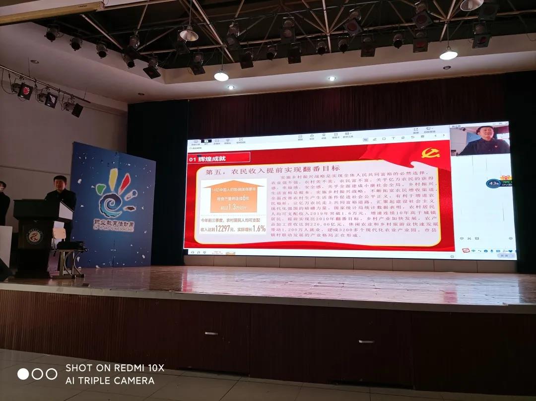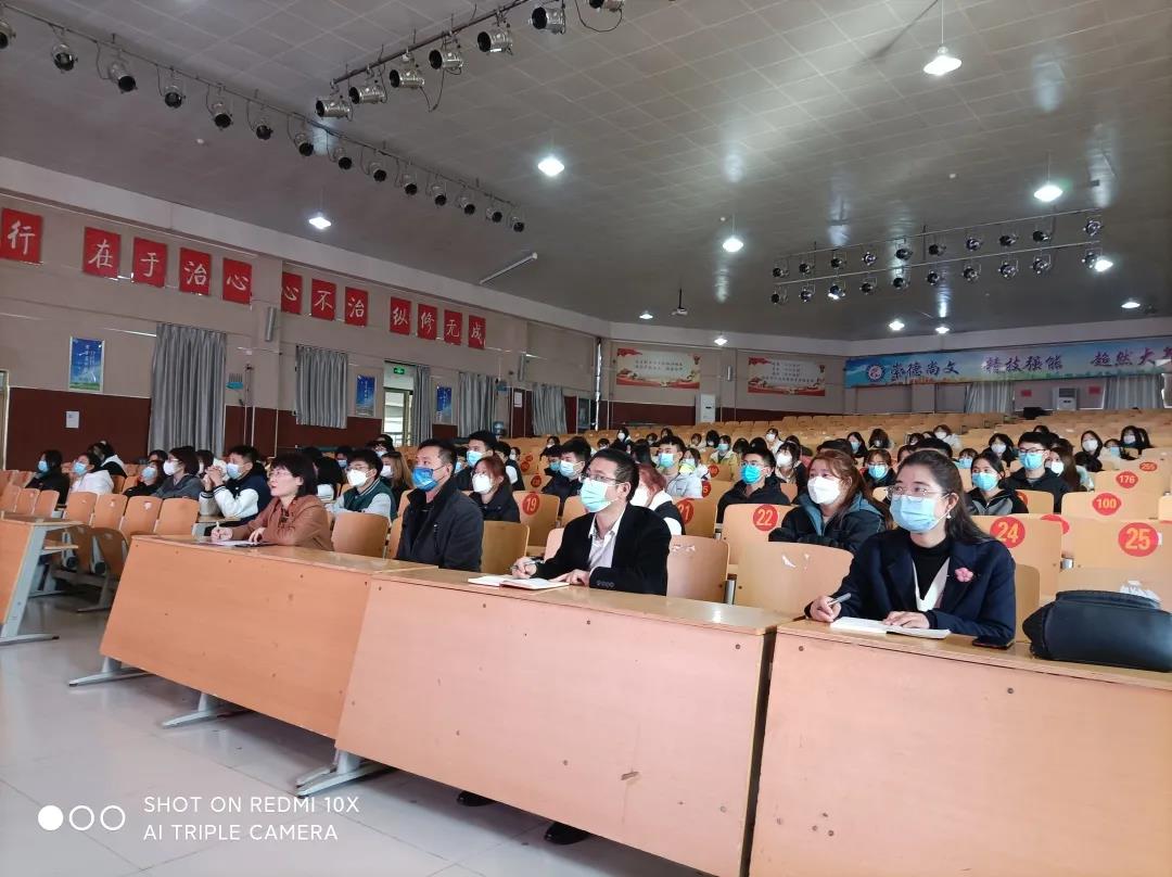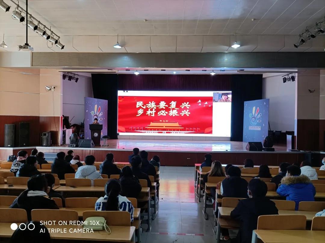 为深入贯彻落实习近平总书记在全国思政工作会议上的指示精神,进一步加强对大学生的思想政治教育,马克思主义学院“形势与政策”大讲堂继续开讲。2021年11月11日,潍坊工商职业学院马克思主义学院邀请学校党委书记郑志松在学校第一报告厅举行了《民族要复兴,乡村必振兴》的专题教育报告会。报告会由马克思主义学院院长王桂珍主持,采取了“线上+线下”的方式举行,全体思政课教师及医养健康学院部分学生代表参加了现场报告会,其余学生在教室利用腾讯课堂进行了远程收看。