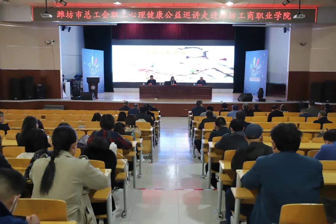 为缓解全校教师面临的来自工作、家庭、社会等多方面的压力,提升教师管理自身情绪的能力,增强我校教职工的心理健康水平,10月21日下午,在我市总工会、教育工会的支持帮助下,潍坊市总工会职工心理健康公益巡讲走进潍坊工商职业学院,特邀潍坊市总工会特聘专家、国家二级心理咨询师、中美国NLP学院授证NLP教练、中国教育委员会“家庭教育指导师”认证专家陈秀中,为我校教职工带来了《给心加点油》的主题讲座。
