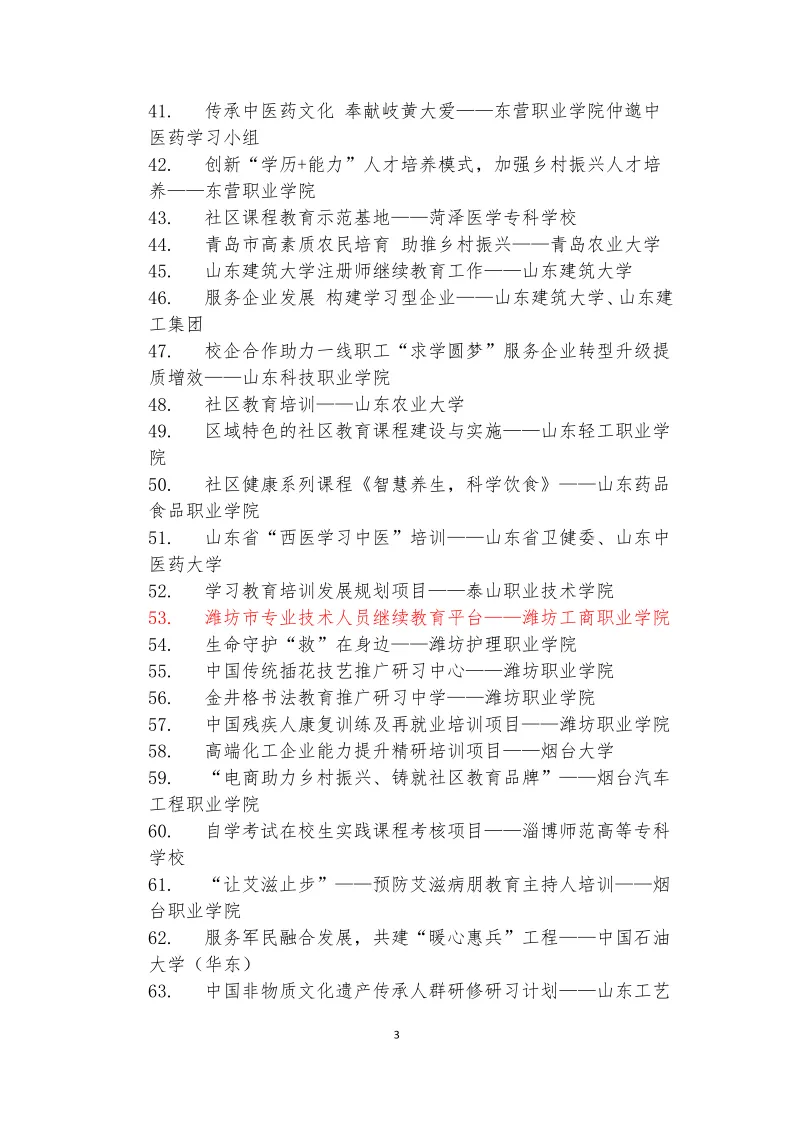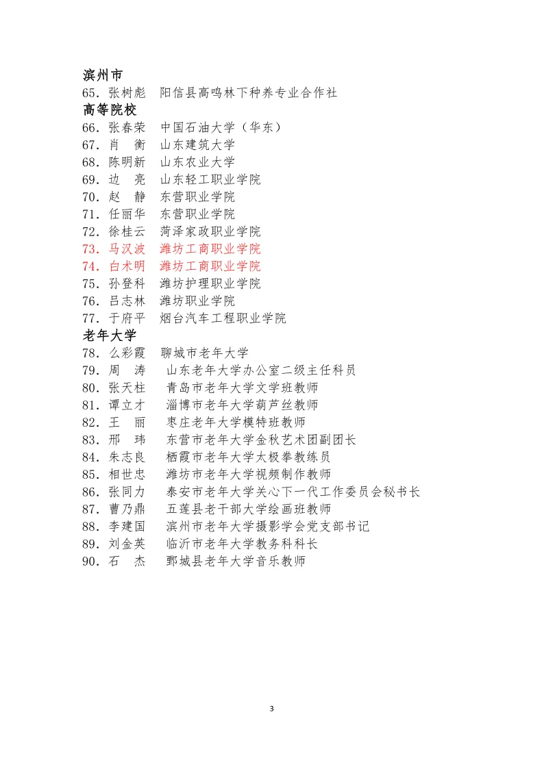 依据《山东省教育厅关于征集山东省“百姓学习之星”“终身学习品牌项目”和推荐全国“百姓学习之星”“终身学习品牌项目”的通知》的相关要求,全省各市组织了“百姓学习之星”和“终身学习品牌项目”征集活动。受山东省教育厅委托,山东成人教育协会于9月6日组织专家进行了评审,拟确定2021年山东省“事迹特别感人的百姓学习之星”10人;“特别受百姓喜爱的终身学习品牌项目”10个;“百姓学习之星”90人;“终身学习品牌项目”72个;推荐国家“百姓学习之星”5人;推荐国家“终身学习品牌项目”5个。我校两大平台成功入选山东省“终身学习品牌项目”,马汉波、白术明成功入选2021年山东省“百姓学习之星”。
