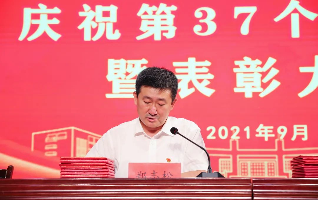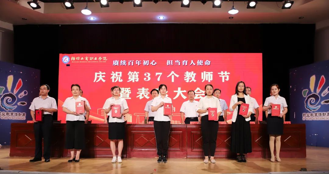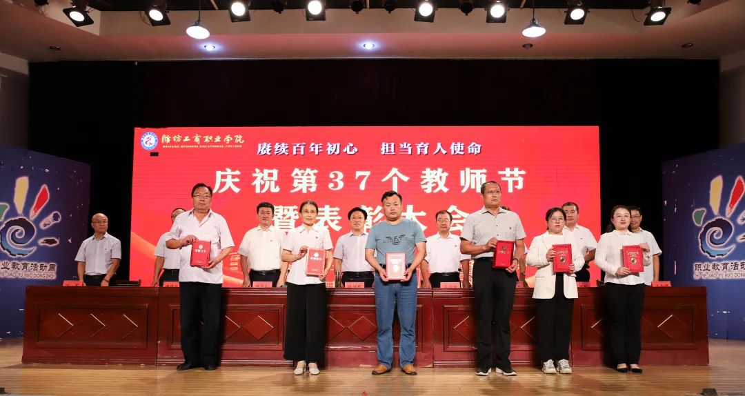 十年桃李硕果丰,九月颂歌感师恩!9月9日,为庆祝第37个教师节,潍坊工商职业学院在第一报告厅隆重举行教师节表彰大会,本次大会的主题是“赓续百年初心,担当育人使命”。潍坊工商职业学院校委会主任张绍秋、校长王传旭、党委书记郑志松等学校领导和教师代表出席本次大会。大会由校长王传旭主持。