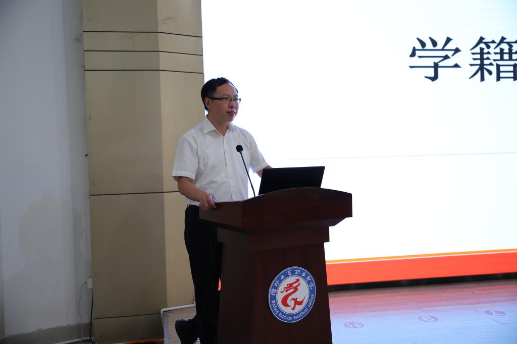8月19日,培训班的第二天,宣传统战部、合作办学处、教务处学籍科以及学生处、团委相关科室负责人分别从新时代大学生意识形态和思想教育、实习管理、学籍学历管理、学生安全以及日常管理、创新创业、党团建设、心理健康教育多个方面展开了培训与指导。培训过程中,辅导员认真的就工作中遇到的相关问题进行探讨,活动氛围热烈、互动积极。培训班还特别邀请到校委会主任张绍秋给大家做了《如何做一个优秀的辅导员》专题报告。首先,张主任从学校发展的全局论述了从辅导员工作的重要性。他强调高校要把立德树人作为教育的根本任务,坚持为党育人,为国育才,辅导员是高校从事德育工作,开展思想政治教育的骨干力量,是大学生健康成长的指导者和引路人。辅导员是助手,要做好党委的助手,教师教学的助手,学生学习的助手;辅导员是导师,要做好政治领导、思想引导、情感疏导、行为教导、学习辅导、就业指导等工作。其次,张主任从“四要”“六有”“六能力”详细讲解了一个优秀的辅导员应该具备的素质要求。所谓“四要”是指:一要站位要高,胸怀大局、把握大势、着眼大事。二要视野宽,有世界眼光。三要胸怀要大。四要作风要实。所谓“六有”是指:眼中有光、心中有爱、肩上有责、脑中有弦、心中有数、手中有招。所谓“六能力”是指:终身学习能力、组织管理能力、业务咨询能力、沟通协调能力、口头表达能力、应急处理能力。最后,张主任从善于学习、率先垂范、学会宽容、淡漠名利、敢于担当、建规立制,学会沟通七个实践层面建议大家如何做一个优秀辅导员。张主任的报告,语言铿锵有力,逻辑清晰严谨、解析精准到位,在场的辅导员老师纷纷表示受益匪浅。