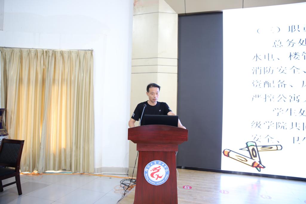 为提升我校辅导员的理论素养和工作能力,全面提升我校整体学生管理水平,打造一支政治强、业务精、纪律严、作风正的辅导员队伍,我校学生处、团委于2021年8月18日和19日,在学校第二报告厅组织开展了为期两天的辅导员素质能力提升专题培训班。我校校委会会主任张绍秋、校委会副主任、党委书记郑志松、校委会成员、党委副书记、副校长刘国庆出席了培训班,七个二级学院院长、党支部书记、专、兼职辅导员和学生处、团委所有老师参加了培训班,培训班由学生处处长王卫主持。