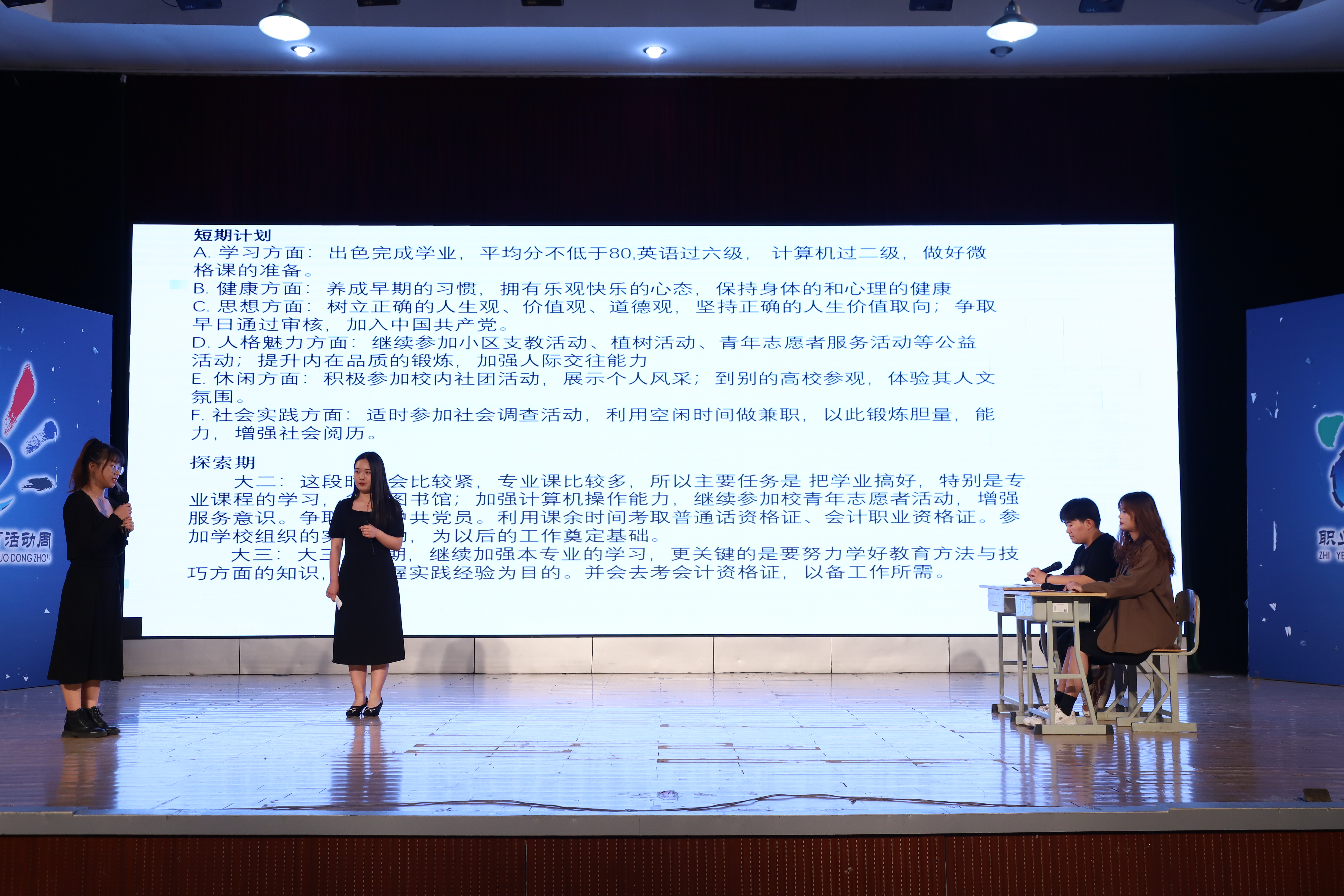 本次比赛还邀请到我校第一届职业生涯规划大赛的两名优秀获奖选手杨其龙和马艳君同学对自己的职业生涯规划进行了现场展示,让在场师生看到了我校青年学子心怀梦想、奋力前行的昂扬姿态。