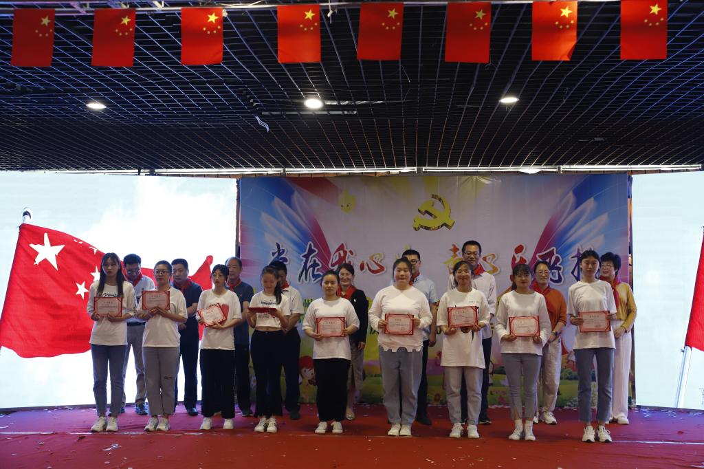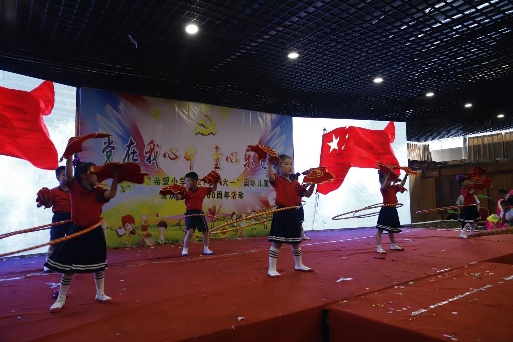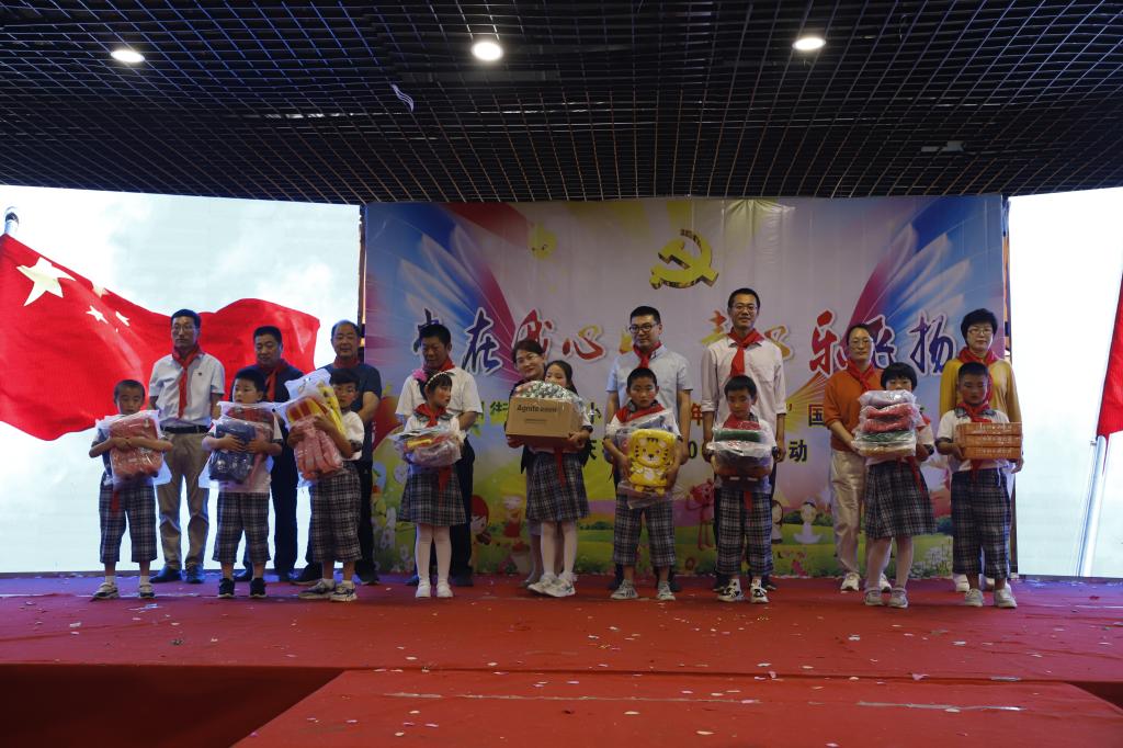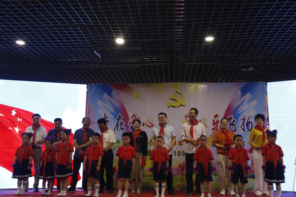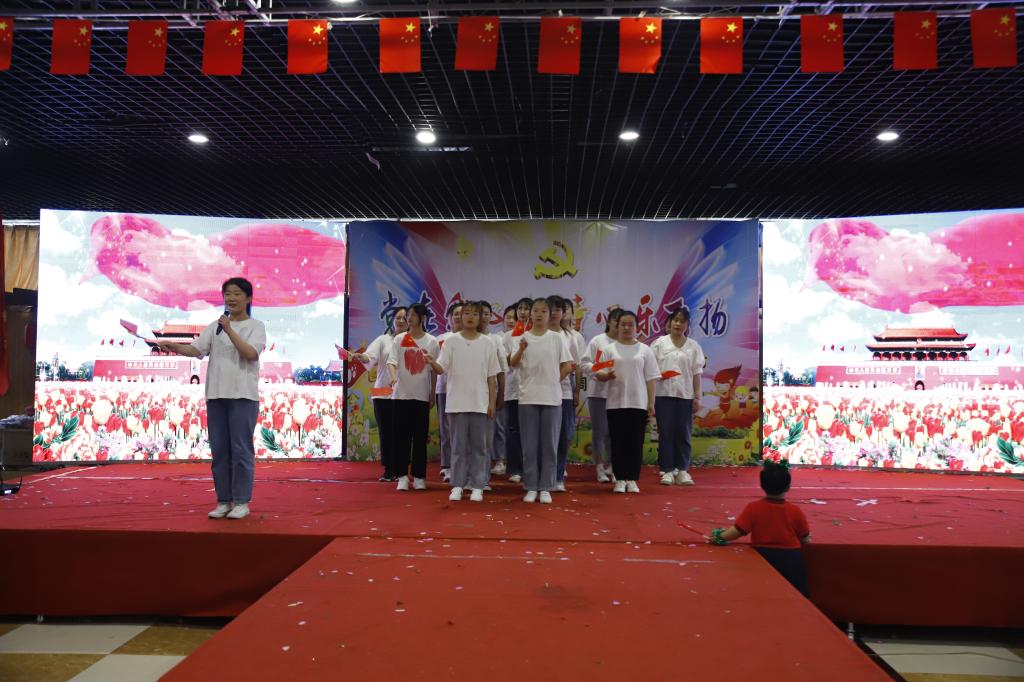 暖暖的夏风,欢乐的海洋,我校学生与希望小学的同学们,用歌声和舞蹈向我们党的百年华诞献礼。节目开始前,希望小学的小朋友们为老师们系上了鲜艳的红领巾,表达自己对老师的尊敬,老师们则为孩子们送上书籍和学习用品等节日礼物。一首《闪闪的红星》拉开了整台节目的序幕。志愿者们随后送上了歌曲《我和我的祖国》,向我们的党和祖国献上了深深的祝福。随后的节目内容丰富,故事剧《猴吃西瓜》,歌伴舞《你笑起来真好看》等一系列精彩的节目,把活动现场带入高潮。