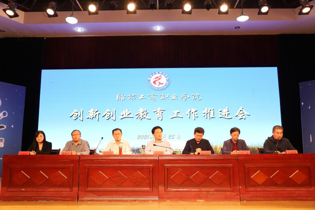 为加快推进我校创新创业教育工作步伐,进一步提高全校师生的创新创业能力,打造我校“双创”教育的升级版,5月25日下午,潍坊工商职业学院创新创业教育工作推进会在学校第一报告厅隆重举行。原潍坊学院教务处处长、国家双创教育专家、互联网+创新创业大赛第一届国赛评委高延鹏教授,“潍坊十大创业之星”、诸城市懿德教师培训学校、潍坊市三棵树职业培训学校宋晓晓校长,潍坊工商职业学院校务委员会主任张绍秋同志,党委书记郑志松同志等学校全体中层干部和教师代表,各班级创新创业工作联络员共计400余人参加此次会议。启动仪式由潍坊工商职业学院副校长、党委副书记刘国庆同志主持。