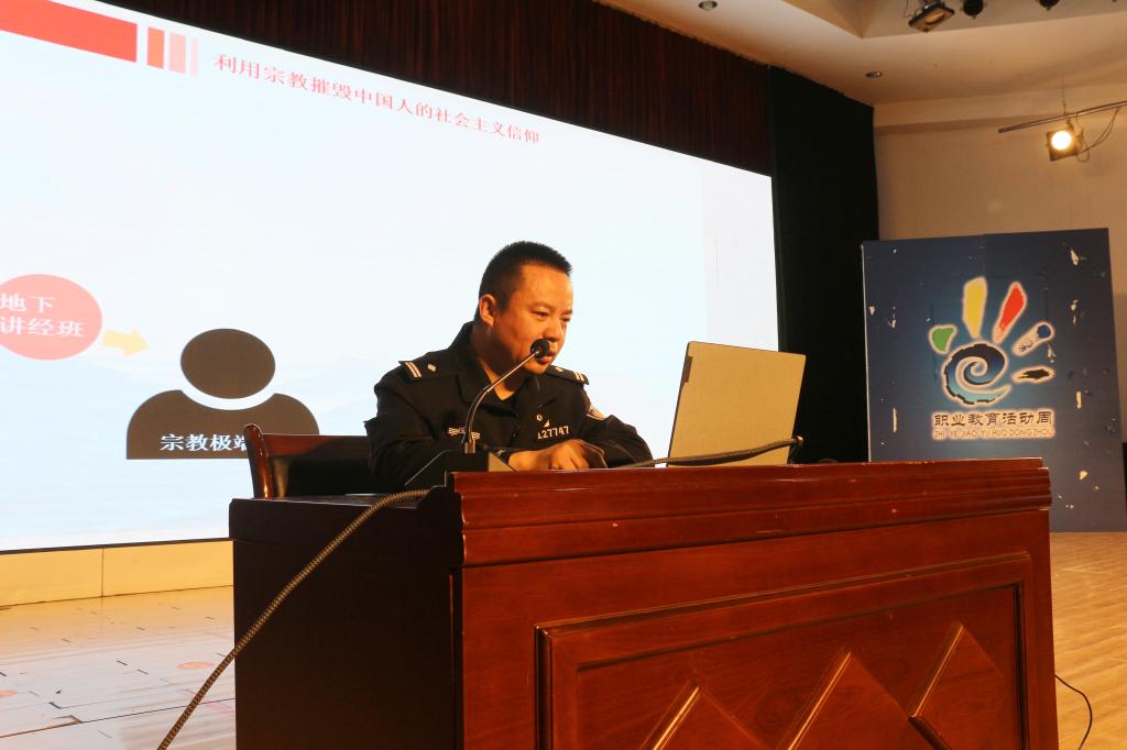 第二阶段进行潍坊工商职业学院反邪教知识专题讲座。由诸城市公安局国内安全保卫大队副大队长刘术勤同志从“为什么要警惕邪教、怎样认清邪教、遇到邪教活动怎么办、如何远离邪教”等方面进行讲解。此次讲座是为了增强广大师生识别邪教、抵制邪教的能力,使广大师生充分认识邪教活动的本质和危害性,自觉抵制邪教的危害,进一步净化校园环境。