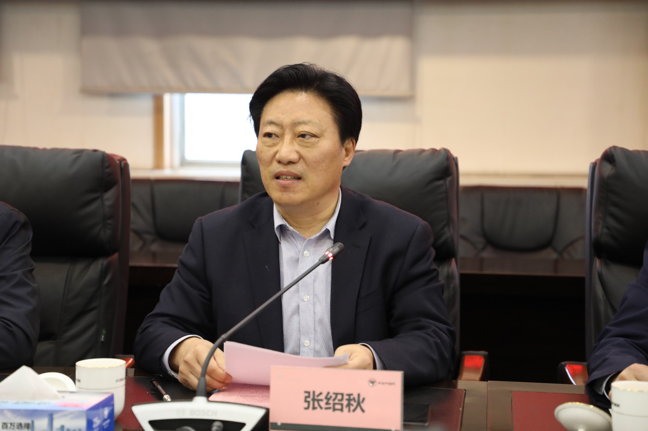 我校校务委员会主任张绍秋对学校及产业学院情况进行了介绍。他谈到,产教融合、校企合作是职业教育的精髓。一所职业院校如果不能与产业紧密融合,不能与企业密切合作,就不可能持续发展,就不可能办出特色,就没有生命力。他强调,双方共建福田领航产业学院是双方发展之需,是最具引领性的合作模式创新,更是双方携手迈向美好未来的“金钥匙”。他指出,下一步福田领航学院将积极发挥产业学院平台作用,通过组建高技能人才现代学徒制班、汽车专业订单班,共建校内实训基地,联合举办技能大赛,以及课题攻关专利转化等多种形式,开展人才培养、科学研究与社会服务等活动,在不久的将来定能有所突破,结出累累硕果。