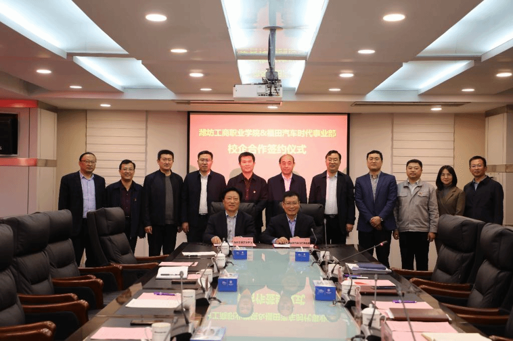 3月31日下午,福田汽车时代事业部与潍坊工商职业学院校企合作签约仪式在福田时代事业部举行。山东省农业农村厅科技教育处处长蒋景春,诸城市委教育工委常务副书记、市教育和体育局党组书记、局长孙加军、副局长宋桂来、职教科科长刘冲,诸城厂区党委书记王志华、时代事业部运营副总裁袁建军以及学院校务委员会主任张绍秋、党委书记郑志松、副院长兼潍坊市经济学校校长唐德良等领导出席了本次仪式。福田汽车时代事业部人力资源总监马子祥主持了本次座谈会。