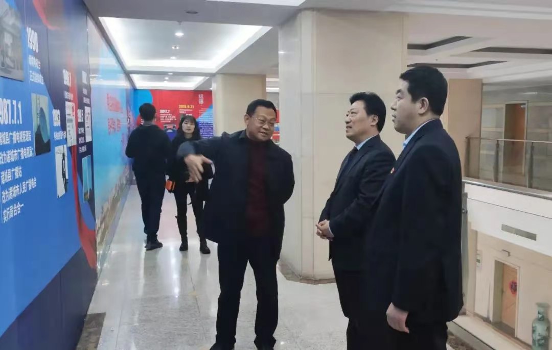 市融媒体中心主任王先信及中心领导班子成员对张绍秋一行表示欢迎,并陪同参观了市融媒体中心的历史进程展厅和演播厅。双方在会议室进行了座谈。