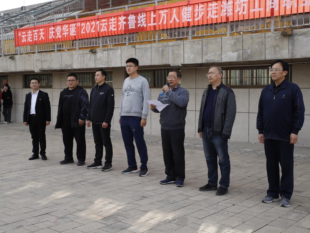 王校长说:在全国各族人民喜迎建党100周年的日子里,在各级领导的组织和广大师生的踊跃报名下,我们潍坊工商职业学院跑跑团正式成立了,今天是比赛正式开始的第一天,也是建党100周年庆祝日倒计时第100天。全民健身作为我国以增强人民体质、提高健康水平为目标的国家战略,也是我们每个人强身健体幸福生活的重要标志。希望大家积极响应,不断提高身体素质,建立科学、文明、健康的生活方式,站在“两个一百年”的历史交汇点,走向美好生活,全面建设社会主义现代化国家的新征程!