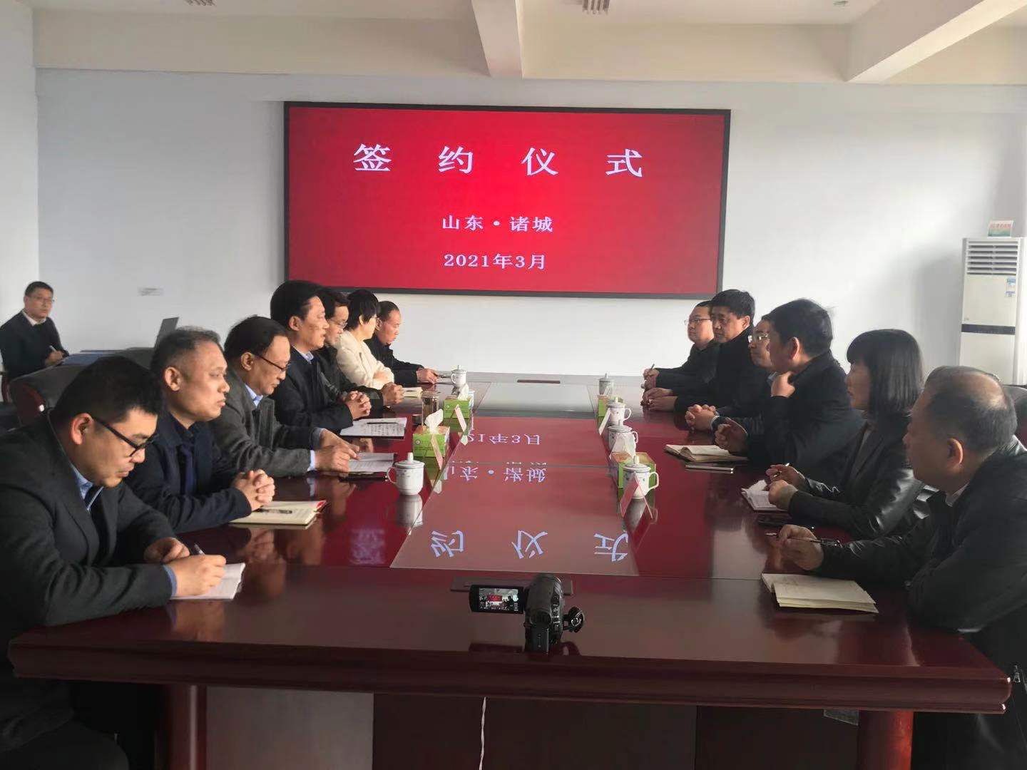 2021年3月9日,潍坊工商职业学院与山东普照教育科技有限公司、江苏启赫集团校企合作项目签约仪式在图书信息楼5楼会议室举行,潍坊工商职业学院校务委员会主任张绍秋、山东普照教育科技有限公司总经理李帅、校企合作总监林峰、升学项目负责人刘静红、江苏启赫集团副总裁包振宇以及学院相关部门负责人出席签约仪式,会议由潍坊工商职业学院副院长兼潍坊市经济学校校长唐德良主持。