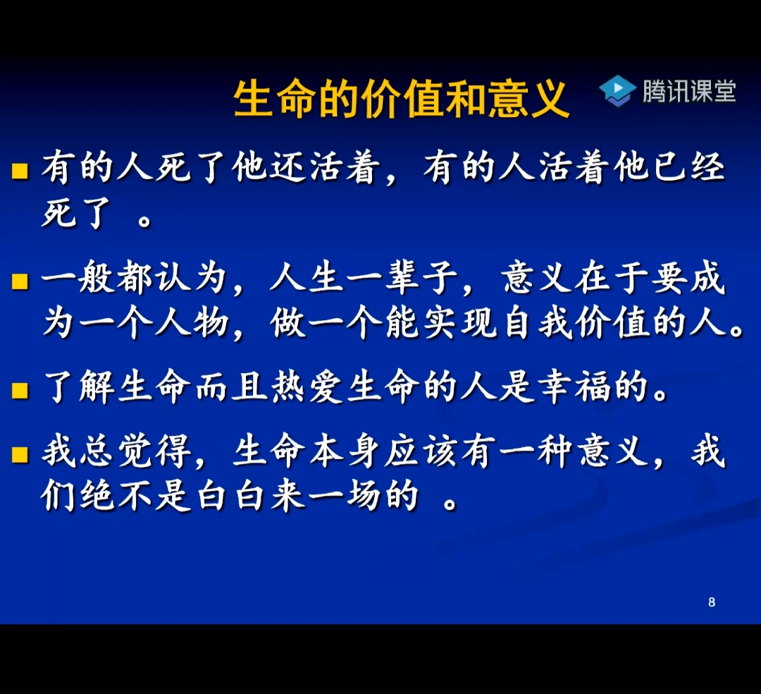 生命总会面临无尽的挑战,总会经历不确定的考验,2008年的汶川地震、正在面临的新冠肺炎疫情都在向我们展示着生命中不可控制的风险,正因如此,生命显得尤其珍贵,在面临生命考验的同时,我们的国家、我们的民族、我们的同胞更以实际行动向我们诠释了生命的价值和意义。永不放弃生的希望、肯定和尊重生命、尽可能地延伸什么的价值,过有意义的人生。