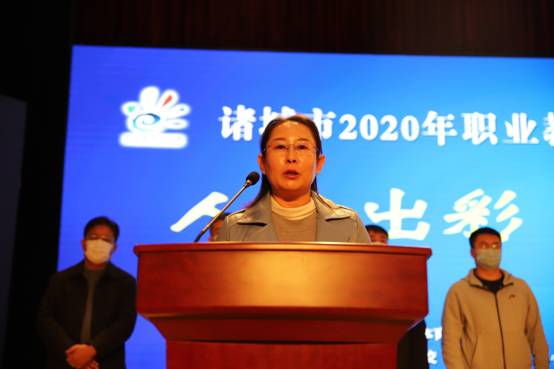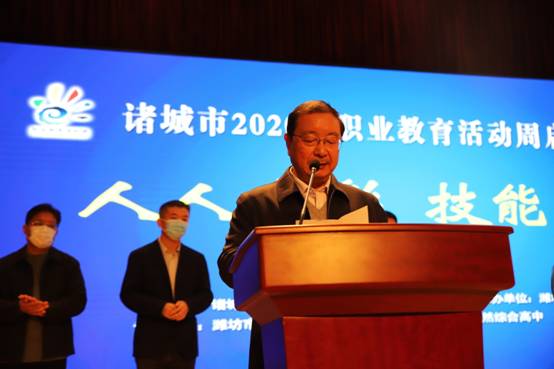诸城市市委常委、宣传部部长、市教育工委书记赵莉同志发表重要讲话。赵部长表示,诸城市职业教育活动周是弘扬劳动光荣、技能宝贵、创造伟大时代风尚的重要载体,是展示职业教育风采,提高职业教育影响力的重要平台。赵部长强调,当前是职业教育发展的重要战略机遇期,职业院校要借助改革的东风,紧紧抓住国家大力发展职业教育的有利时机,乘势而上培养更多高素质、复合型、技术技能型人才。让我们以本次活动周为新的起点,解放思想,齐心协力,锐意进取,树良好职教形象,展职教时代风采,为推动我市三区一城建设,服务经济社会高质量发展做出新的贡献!
