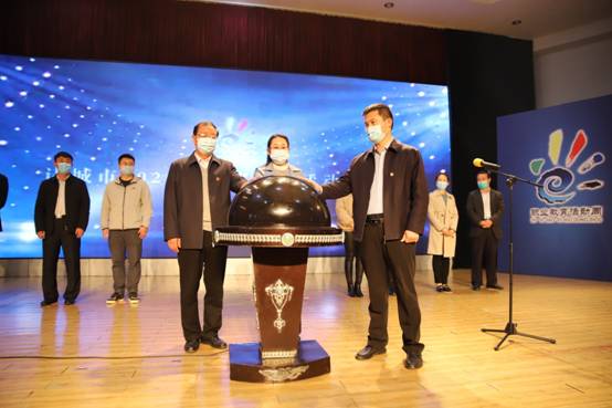 赵莉部长、孙加军局长、王传旭校长共同按亮启动球。启动仪式结束后,大家一起参观了职业教育发展成果展区和医养健康实训中心。