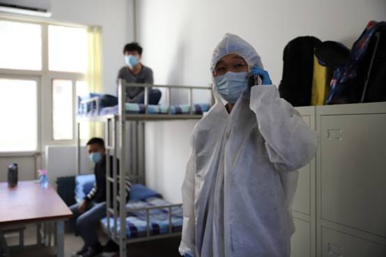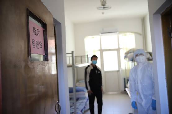 公寓值班辅导员将疑似学生迅速转移至所在楼层临时留观室安抚并建档,联系留观组值班员到现场初诊。
