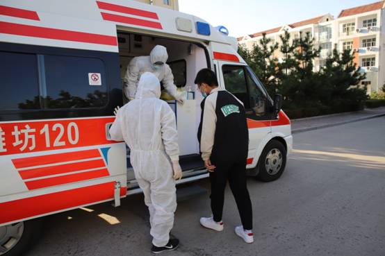 留观转诊组值进行体温检测确认,并联系120车辆,将发热学生转运至发热门诊进一步排查。