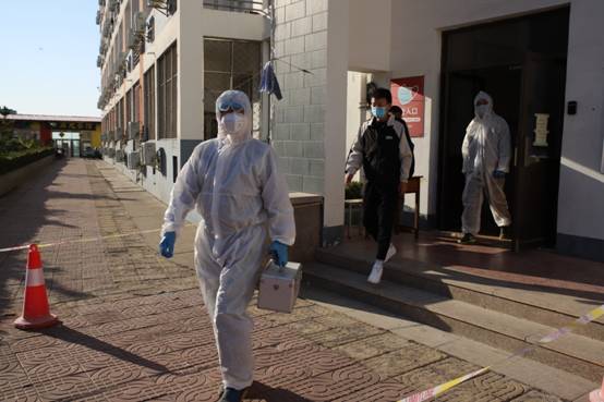 后勤服务人员对同宿舍、同楼层、同公寓楼开展消杀作业。