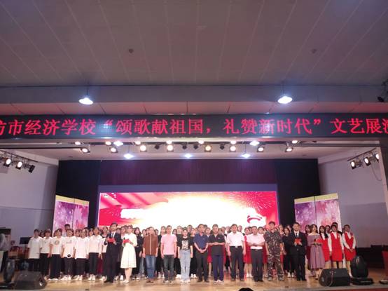 9月29日,潍坊市经济学校在第一报告厅举行庆祝新中国成立71周年文艺展演,学校领导、教师及全体在校学生参加了活动。校领导代表学校在比赛开始之前发表了热情洋溢的致辞,全体师生起立,共唱中华人民共和国国歌。在激扬的国歌声中,拉开了文艺展演的序幕,各展演节目争奇斗艳,舞蹈、合唱、相声、专业礼仪表演,各放异彩,现场高潮一波接一波。