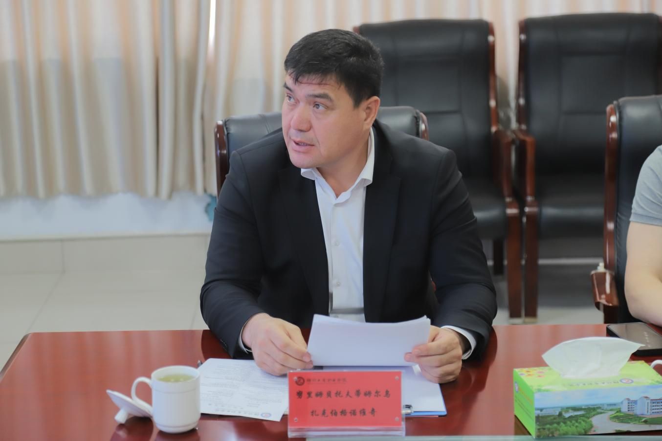 乌斯马诺夫·乌马尔·库特利穆拉托维奇副部长对热情接待表示感谢,高度认可学校办学实力与国际化战略布局,并分享了己方在职业教育体系改革、产业资源对接及国际合作领域的规划,表达了建立长期稳定合作关系的强烈意愿。卡拉卡尔帕克国立大学副校长努里姆贝托夫・蒂姆尔・乌扎克伯格诺维奇介绍了该校办学概况与专业设置,期待通过联合科研、师生互访等形式,实现双方职业教育资源共享与协同创新。