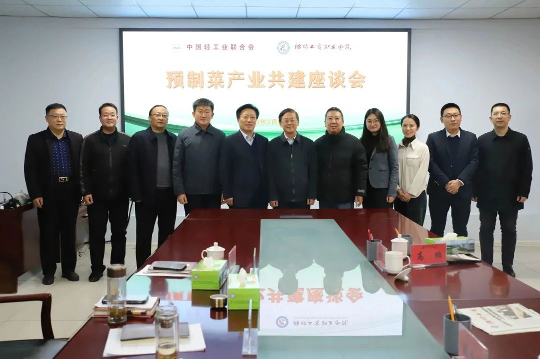 双方就预制菜职教集团建设、预制食品产业集群共建培育及成立中国轻工联预制食品分会等事宜进行交流。