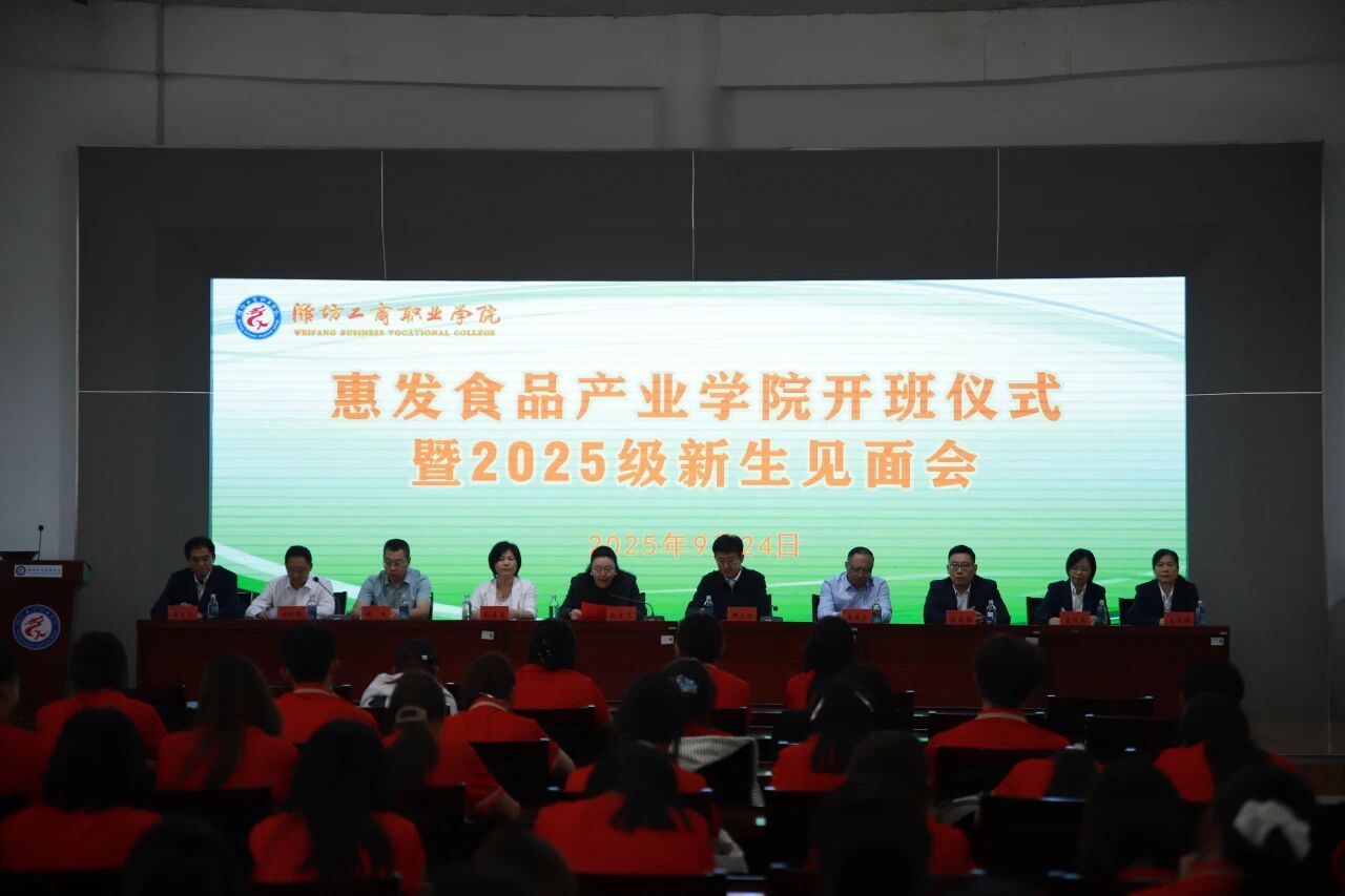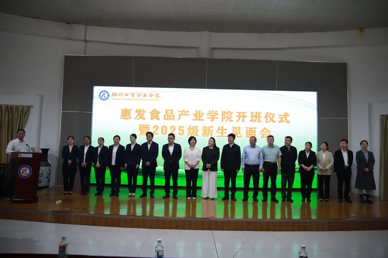 9月24日上午,我校惠发食品产业学院为2025级食品质量与安全、食品智能加工技术、餐饮智能管理三个专业的校企合作班新生举行新生见面会。党委常务副书记、执行校长郑志松,副校长、潍坊市经济学校校长唐德良,惠发食品有限公司的相关领导、产业学院团队及全体新生参加。