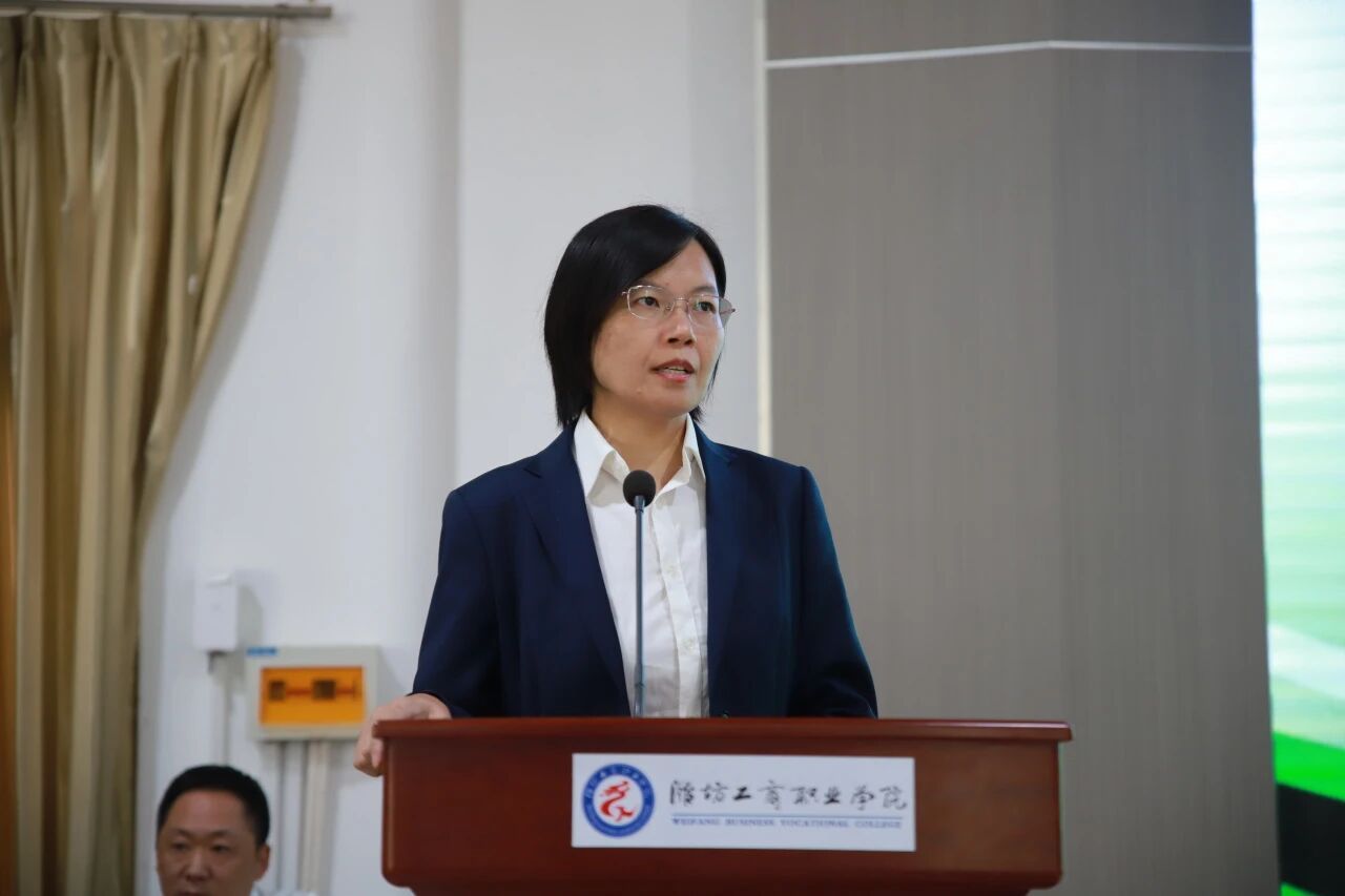 惠发食品有限公司副总经理张庆玉详细说明了产业学院的成立背景、建设目标及“产教融合、协同育人”培养模式。她指出,学院将通过课程共建、师资互聘、实习实训等方式,实现人才培养与产业需求无缝对接,助力学生高质量就业。