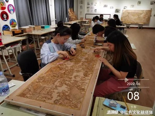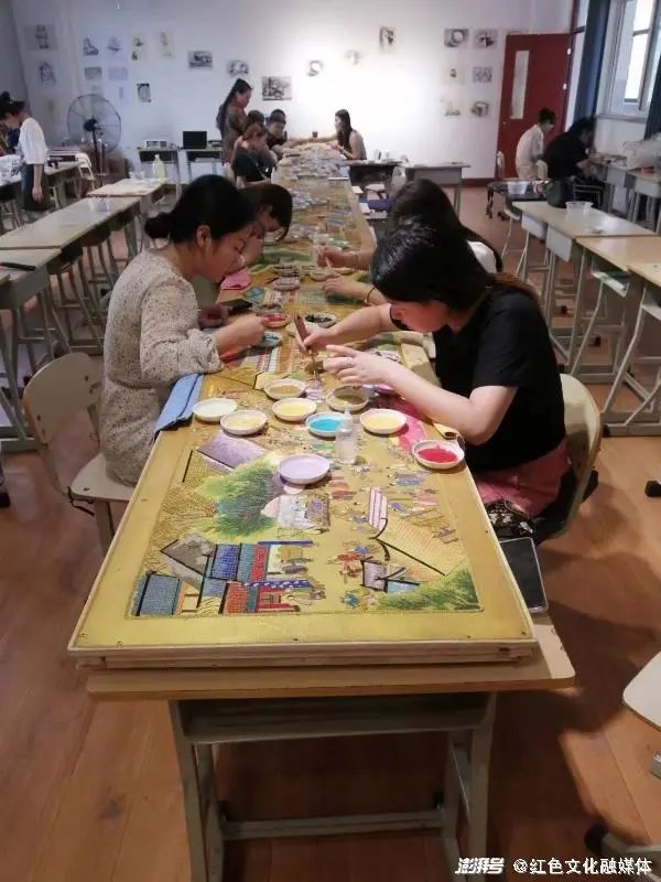 经过师生们的共同努力,一副画面清晰,色彩丰富,晶莹剔透,立体感强的掐丝工艺的《清明上河图》就这样呈现在了大家的面前。