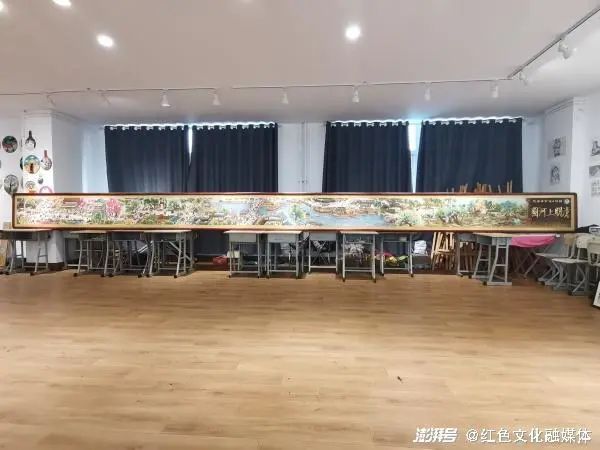 2022年4月18日至7月8日,潍坊工商职业学院幼教艺术学院教师张芙慧带领28名学生,历时80天,以张择端《清明上河图》画面构图,精心绘制出一幅大型突出色彩效果的《清明上河图》掐丝珐琅画。画芯宽度为58厘米、长度为975厘米,掐丝珐琅画面积为5.655平方米,成功创造了世界最大的《清明上河图》掐丝珐琅画世界纪录。