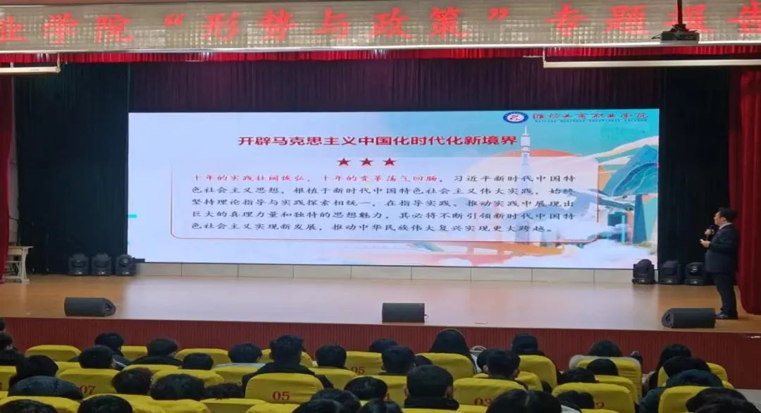 12月14日,马克思主义学院“形势与政策”大讲堂在我校第一报告厅开讲。我校校长张绍秋同志作《开辟马克思主义中国化时代化新境界》的专题报告。马克思主义学院全体思政课教师以及机电与汽车工程学院700多名学生代表参加了现场报告会,全校其他师生线上收听收看。