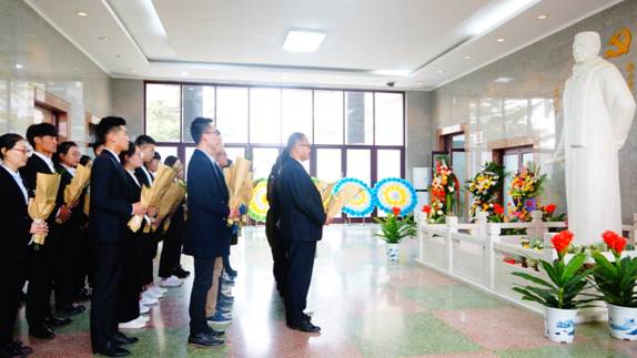 学院领导向刘家庄抗战英雄默哀致敬,并敬献鲜花