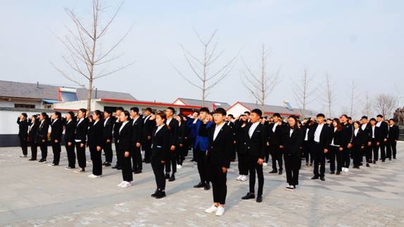 师生面向烈士雕像庄严宣誓